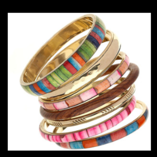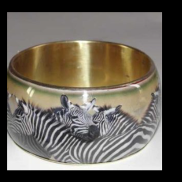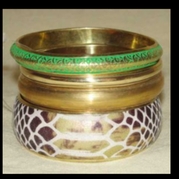 Handcrafted animals skin crafted with golden brass metal and wood combination bangle set.