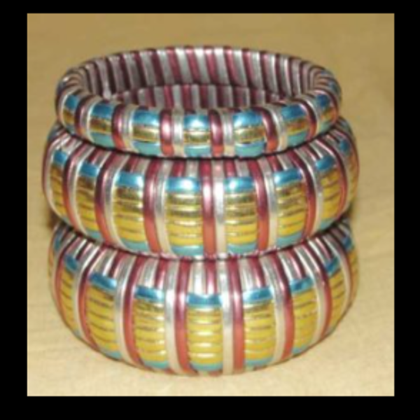 Handcrafted animals skin crafted with golden brass metal and wood combination bangle set