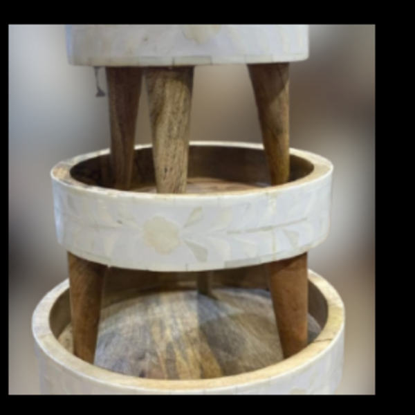 Natural white bone crafted with black color resin combination Moroccan designer  square cake stand.