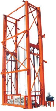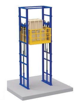 • A type of material handling lift designed to transport heavy goods between different floors, featuring two vertical masts (columns) which work together to provide enhanced stability and lifting capacity for large or bulky items.