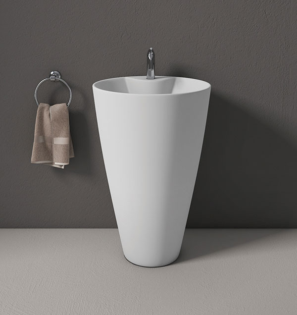 an open usually circular vessel with sloping or curving sides used typically for holding water for washing. a new washstand and basin.
