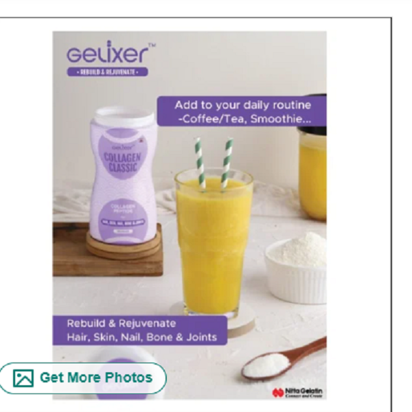 Gelixer offers a range of ‘Wellness from Within’ products with Collagen Peptide. A wonder protein, our Collagen Peptide helps you to “Rebuild & Rejuvenate" hair, skin, nail, bone, joints, cartilage, tendons, ligaments, muscles, metabolism and more. Gelixer Collagen is manufactured and marketed by Nitta Gelatin India Limited, the subsidiary of Nitta Gelatin Inc., Japan. Since 1919, Nitta Gelatin is at the forefront of collagen with the growing body of scientific evidence supporting the functional benefits of collagen peptides. Find your Gelixer Collagen today and Rebuild & Rejuvenate your body, health and life.