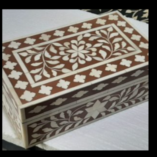 Natural white bone crafted with cane / bamboo tree combination designer bone box  .