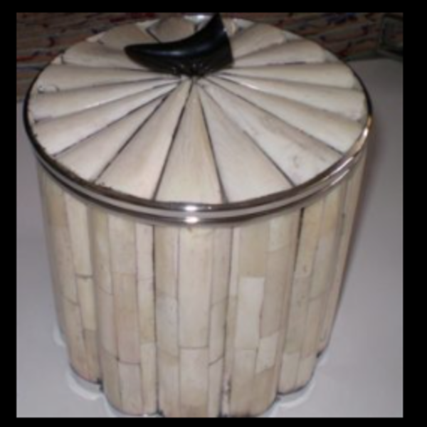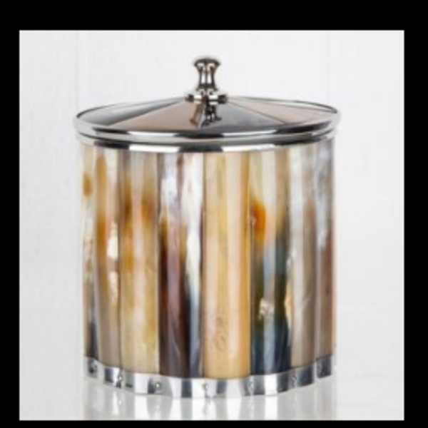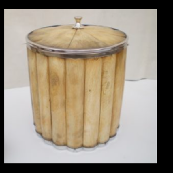 Water Buffalo horn with antique Burn work crafted Pipe designer Ice Bucket. This antique burn horn ice bucket is perfect for evenings where there is something a little extra to celebrate. The highly individual and organic patterns of natural horn have been combined with the functionality of stainless steel, creating an exquisite and useful piece which ensures ice is kept at the perfect temperature.