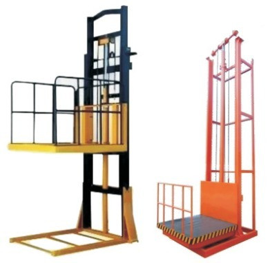 • A vertical material handling system, typically hydraulically operated, featuring a single mast structure designed to efficiently transport heavy goods between different floor levels in a space-saving manner.