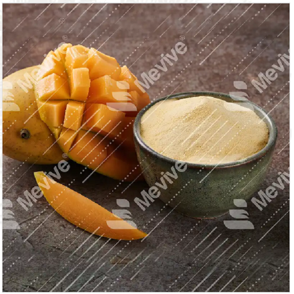 Mevive's spray dried mango fruit powder acts as a natural flavouring and colouring agent. Our light yellow coloured mango fruit powder extracts the nutrition, fragrance, and flavour of the fresh mango fruit. Our mango flavour powder unleashes two distinct varieties of taste. One is a sharp citrusy seasoning punch from the totapuri mango fruit variety that spotlights the mildly sweet and sour taste. And another is a streak of sweet signals from the alphonso mango fruit. The alphonso mango powder can function as a sweetener similar to sugar and honey.