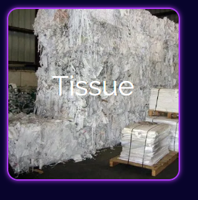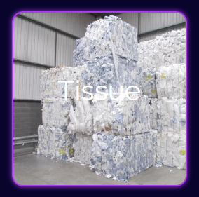 Tissue paper scrap includes used tissues, napkins, paper towels, and other paper products. Tissue paper scrap is typically recycled into new tissue paper products.